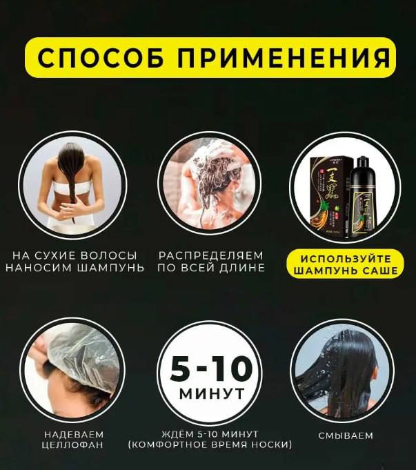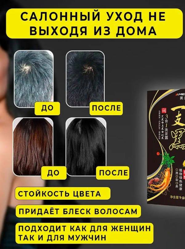 Хотели бы вы вернуть своим волосам молодость и яркость? Представляем вам наш шампунь-краску для седых волос - настоящее чудо современной косметологии! Наш шампунь-краска разработан специально для тех, кто хочет избавиться от седины и придать волосам насыщенный и естественный оттенок. Уникальная формула нашего продукта обогащена активными компонентами, способными преобразить волосы с первого применения.